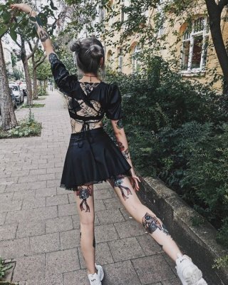 La linda chica alternativa Adora te da un striptease en el patio trasero