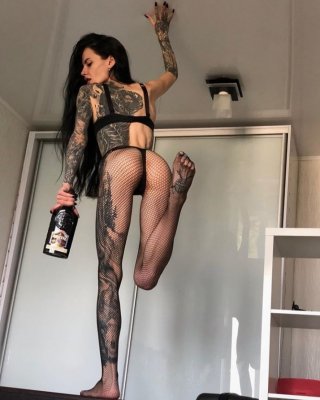 Alt girl jade sparks strips down to her socks on the couch