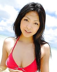 Asiática asami ogawa posa en la playa con su bikini