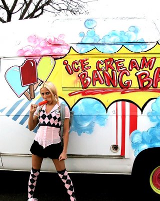 Rubia joven es follada a lo perrito en la parte trasera de un camión