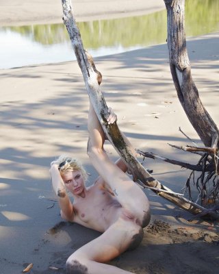 La joven rubia lena anderson se desnuda para ti al aire libre