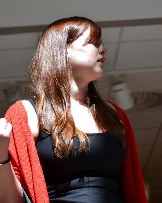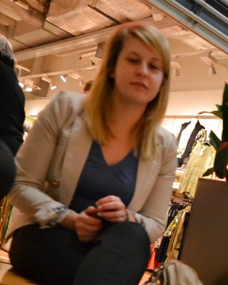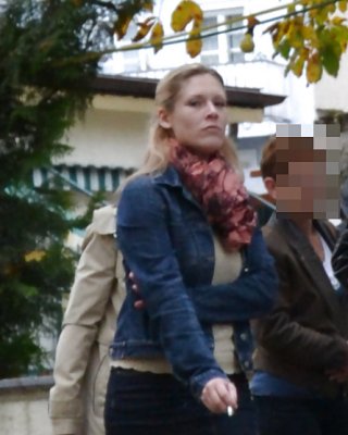 Fotos cándidas de la nena de grandes tetas Jana Def en bragas a rayas