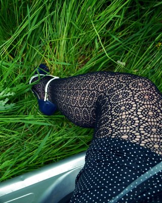 Joven chupando los zapatos de tacón alto