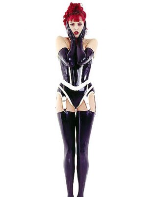 Evie delatosso en un corsé de charol