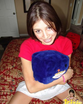 La linda joven melissa doll jugando con un gran consolador