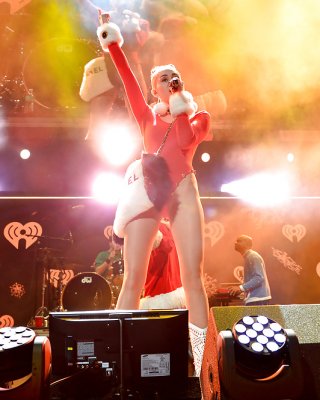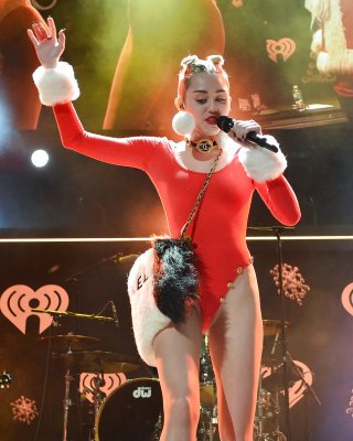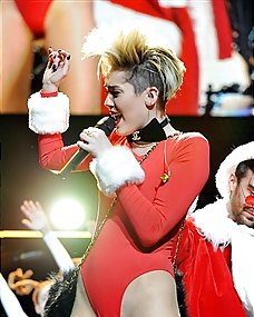 Tia Cyrus revela sus grandes tetas en medias junto al árbol de navidad