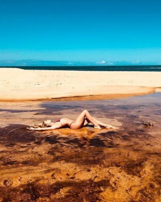 Doutzen kroes con un bikini sin tirantes con estampado de flores en la playa de ibiza