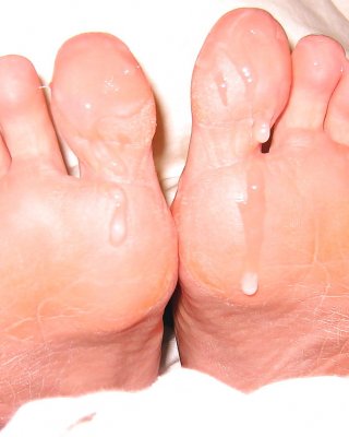 Cumming en los pies de las esposas