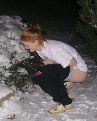Andi pink se desnuda fuera de su casa en un frío día de invierno