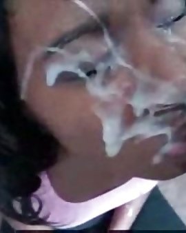 Pechugona joven universitaria amateur sexo con corrida facial en gafas