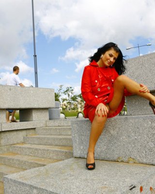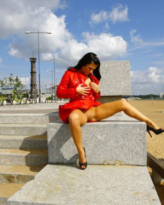 La morena de grandes tetas posa con poca ropa al aire libre