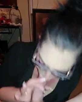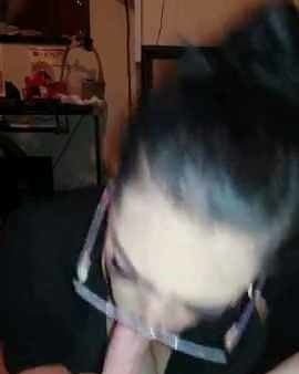 Asiática con gafas annie cruz mostrando su coño recortado