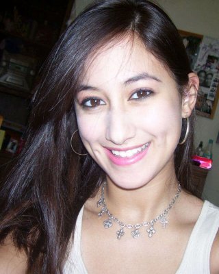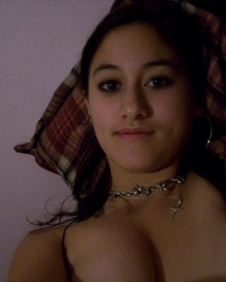 Joven latina linda posando en topless y chupando la polla