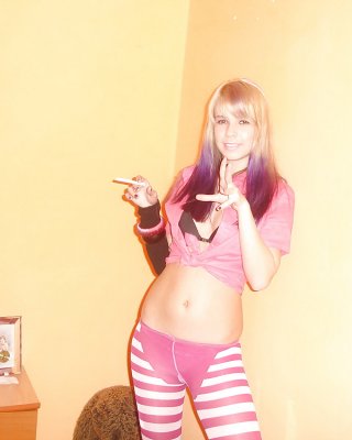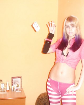 La jovencita simi mostrando su coño rosado y caliente