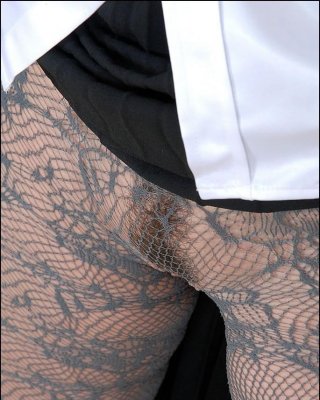 La flaca de piernas largas lorena posa con sus medias de red
