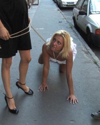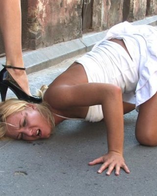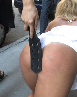 Azotes en público y adoración de los pies con una rubia caliente