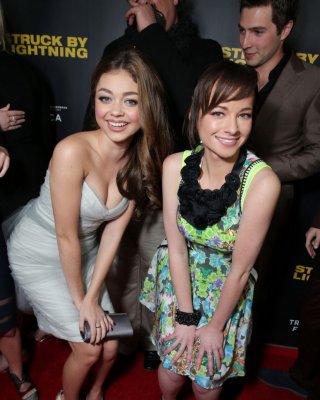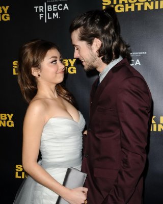 Sarah hyland muestra un enorme escote con un vestido sin tirantes en 'struck by lightni