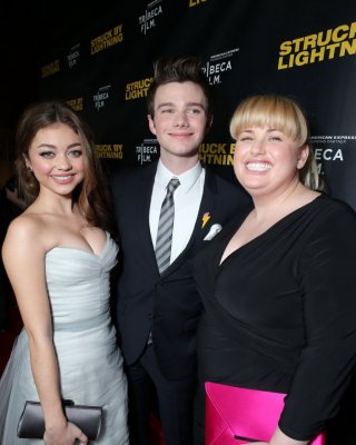 Stefanie scott muestra un enorme escote con un vestido sin tirantes en el pitch perfec