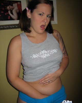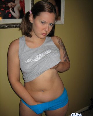 Sexy amateur con cola de caballo revelando sus tetas y su coño invitando