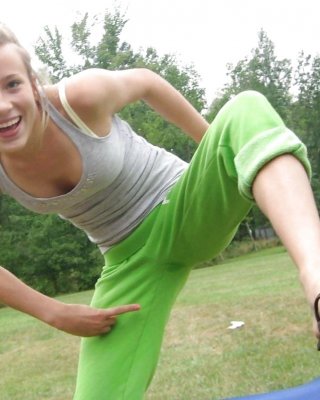 Rubia admirable con suelas sexy bajando sus pantimedias y tocando su raja