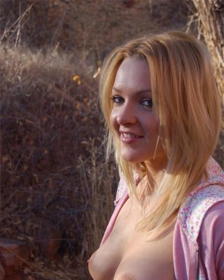 La joven rubia se despoja de su lencería rosa y revela su coño