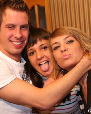 Amber y bella envuelven sus pequeñas bocas alrededor de una gran polla