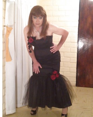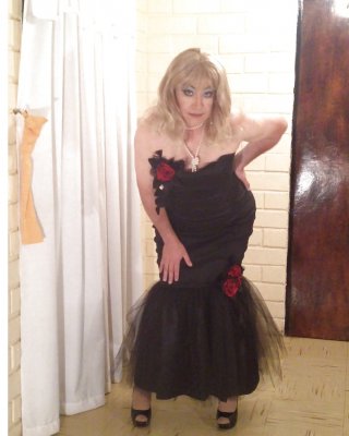 Vilma se desliza fuera de su nuevo vestido negro